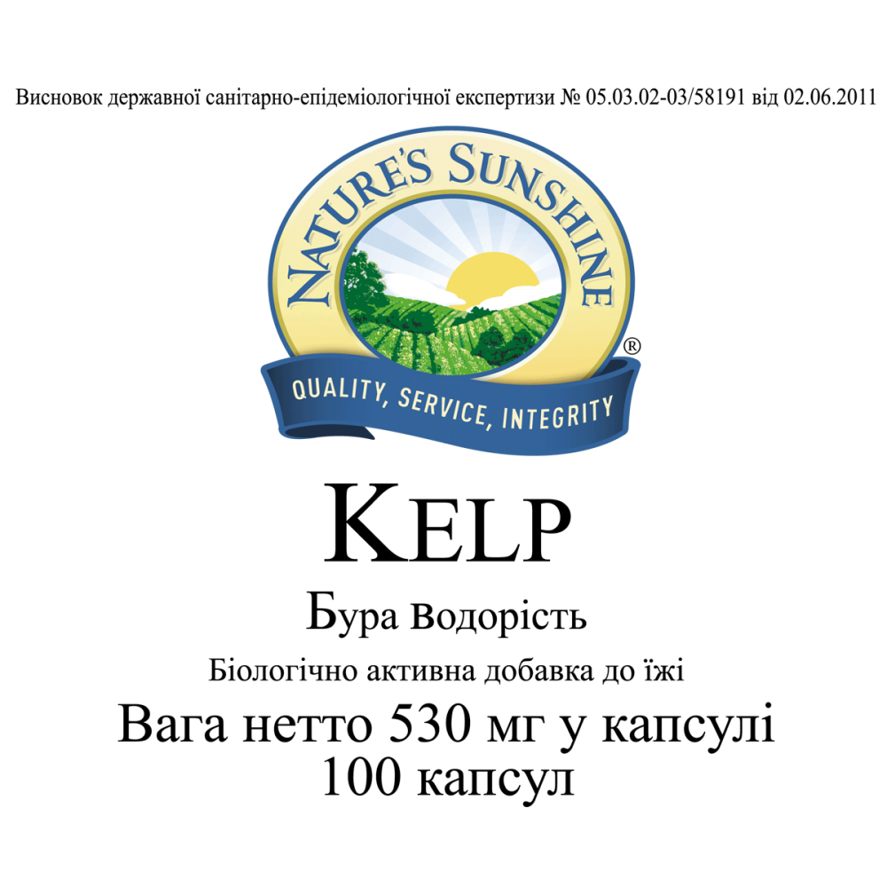 Келп - природне джерело йоду (200 мкг), містить альгінові кислоти, у невеликій кількості містяться макро- і мікроелементи (залізо, фосфор, кальцій, магній, барій, калій, сірка та ін.).