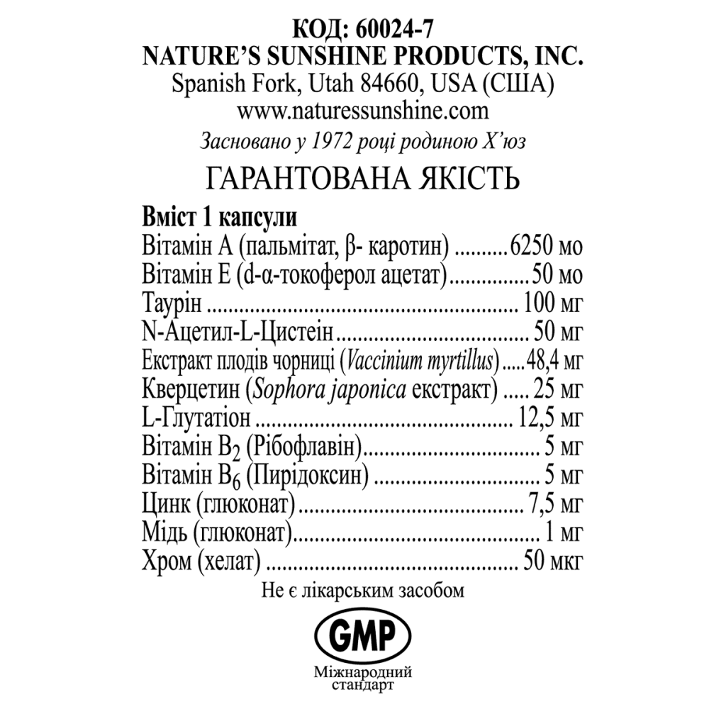 Медь и цинк (в глюконате), селен (в хелате) – входят в состав ферментов антиоксидантной защиты. Цинк также играет важную роль в процессах регенерации клеток сетчатки.